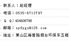 魯ICP備09088268號(hào)-1 ![]() 聯(lián)系人:趙經(jīng)理 電話:0535-6713797 傳真:0535-6713797 |